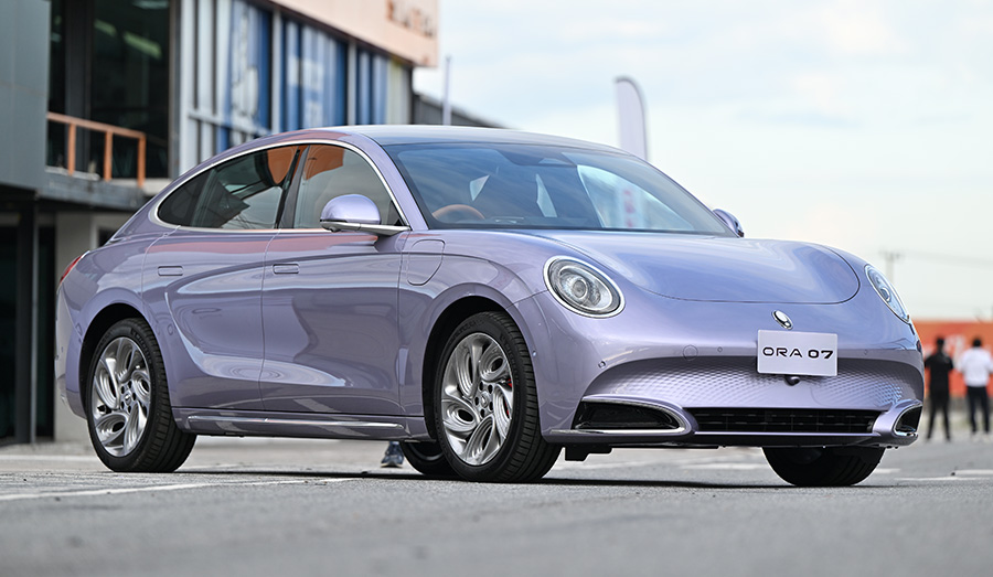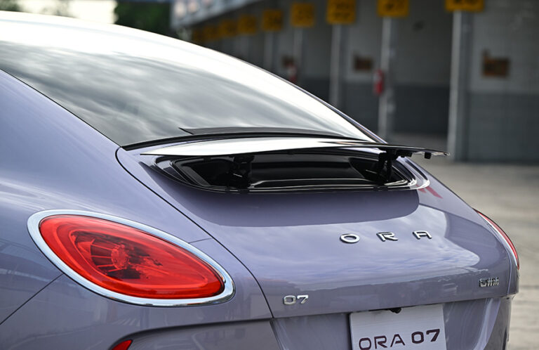 ภายนอกของ ORA 07 ชูไฮไลต์ด้วยหลังคากระจก Glass Roof ขนาดเต็มความกว้างของหลังคา พร้อมกระจังหน้าแบบ Active Air Inlet Grille สปอยเลอร์หลังไฟฟ้า Electric Rear Spoiler และเสียงท่อไอเสียแบบสังเคราะห์ Exhaust Synthetic Noise เพื่อเพิ่มความเร้าใจในการขับขี่